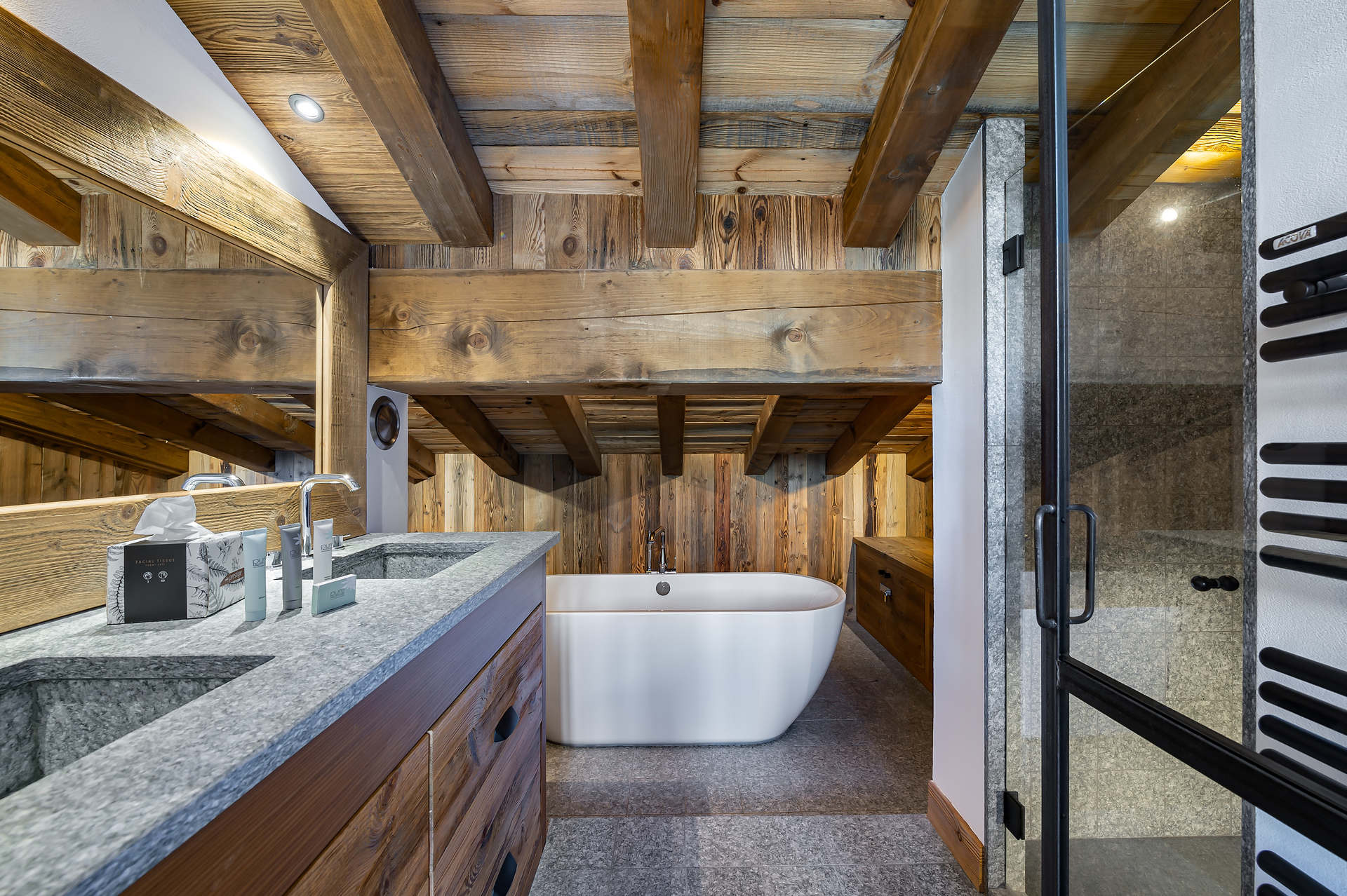 - Chambre de maitre en suite avec douche, baignoire, vasque double, toilettes indépendantes, terrasse