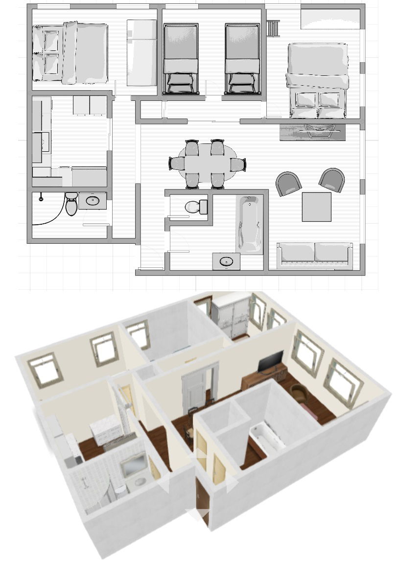 4 pièces de 80 m2 pouvant accueillir 6 personnes