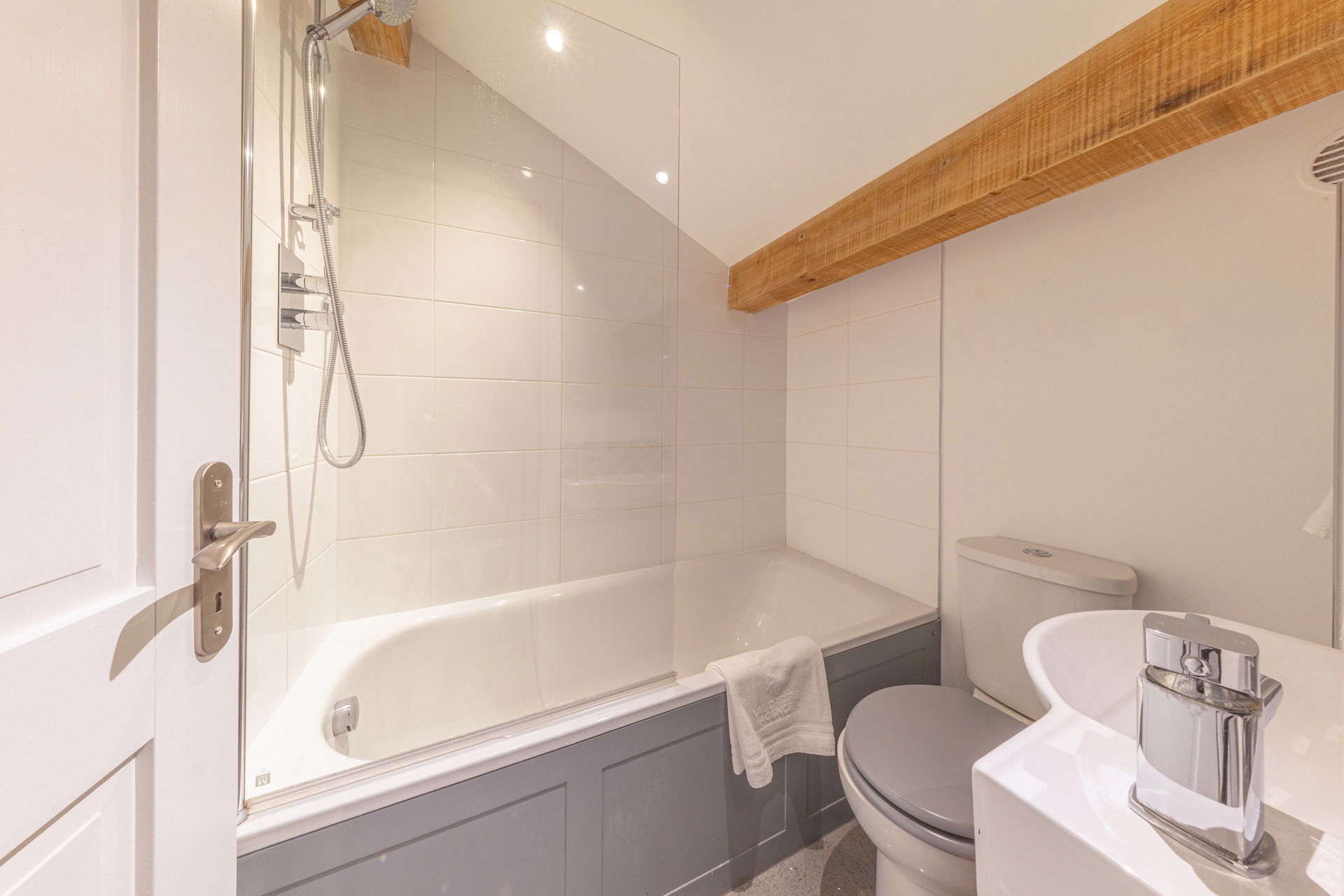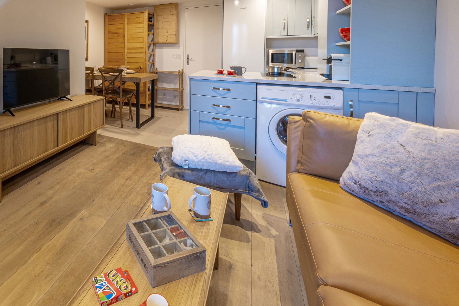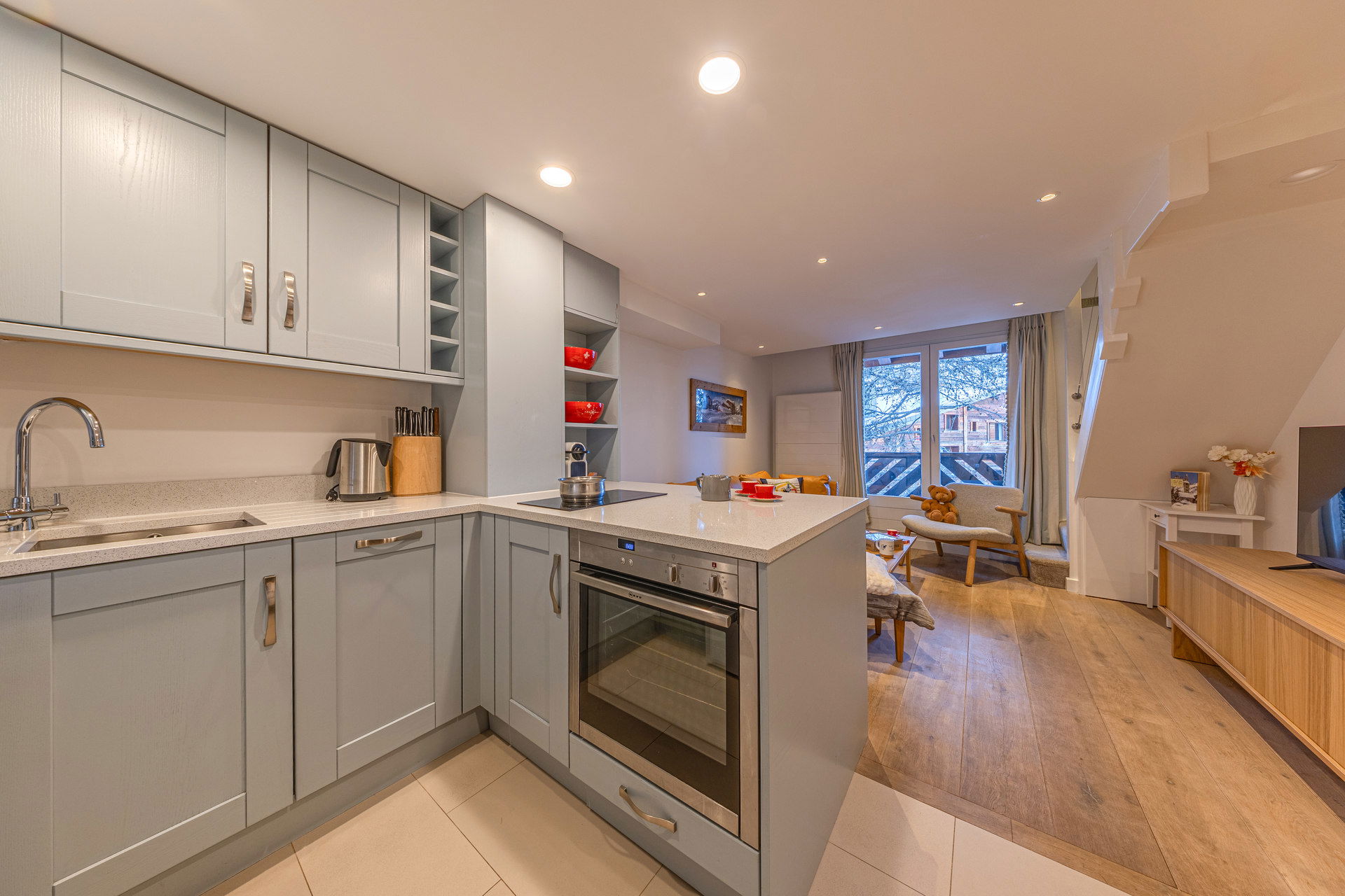 Equipée d'un lave-vaisselle, four, micro-ondes, plaque vitrocéramique, grand réfrigérateur avec congélateur, lave-linge